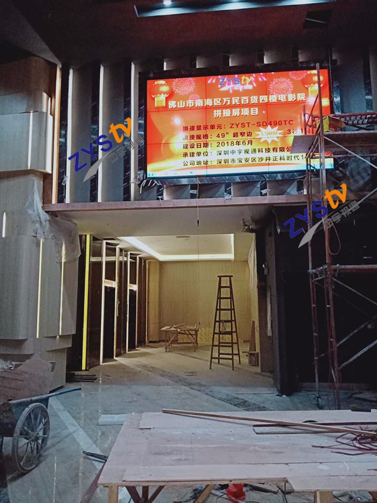 佛山市南海區萬民百貨4樓電影院49寸拼接屏項目選擇中宇視通科技合作,項目安裝調試完成并且順利簽收!