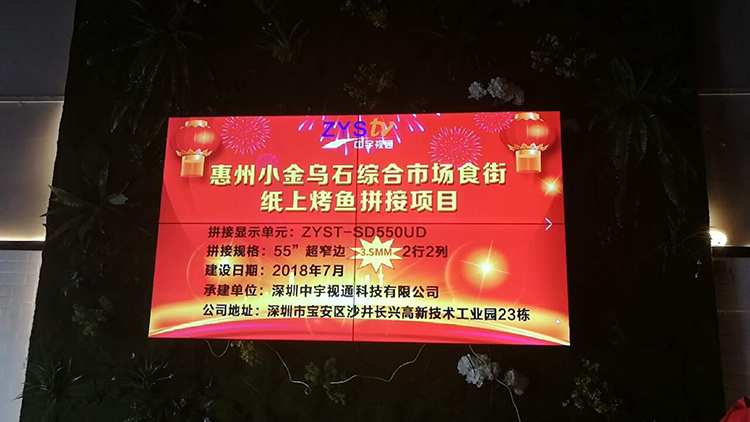 惠州小金口烏石綜合市場美食街紙上烤魚55寸拼接屏項目安裝調試完成并且順利驗收!