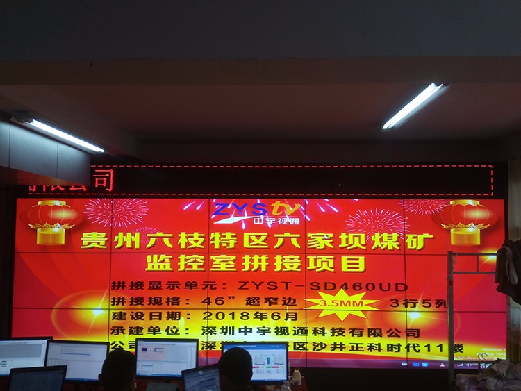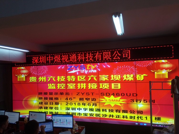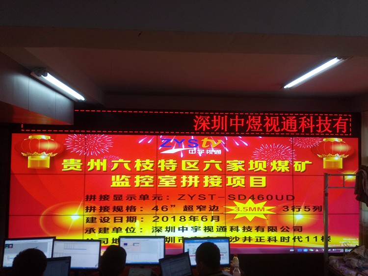 貴州六枝特區六家壩煤礦監控室46寸拼接屏項目選用深圳中宇視通科技合作,項目與6月21號順利通過驗收。