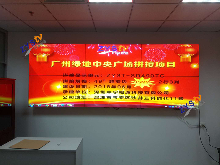 廣州綠地中央廣場采用中宇視通49寸2*3拼縫3.5mm拼接屏項目安裝調試完成。