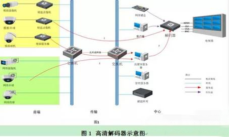一個完整的高清監控系統,必須涵蓋前端、傳輸、后端以及中心各個環節,缺一不可。其中,前端負責高清圖像的采集,傳輸負責高清圖像的輸送,后端負責高清圖像的存儲,中心負責高清圖像的顯示和業務的管理??梢哉f,一套高清監控系統,真正給用戶體現直觀價值的就在于中心的圖像高清顯示,而這離不開高清解碼器。