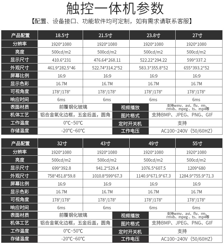 采用高質量紅外觸摸面板,超高透光率,抗暴能力強,耐刮耐磨,防塵防水;