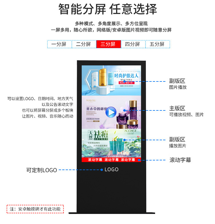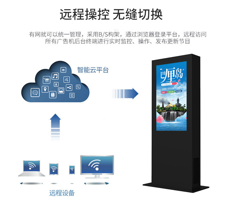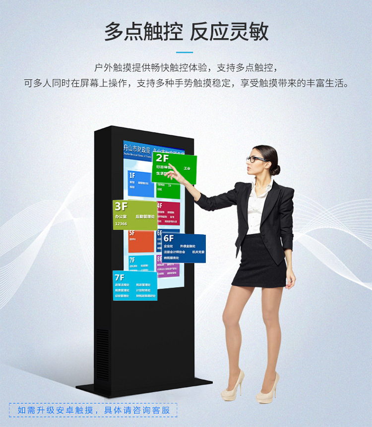 戶外立式廣告機適用于旅游景區、公園、廣告傳媒、社區、公交站臺、高速收費站、政府機關、校園等戶外場合使用,我們的戶外廣告機支持定制外觀、硬件、接口等,廠家直銷,價格優惠,歡迎來電咨詢:18566661105