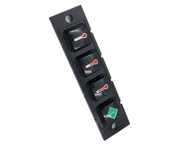 0.25mm及以下的塑料基板稱為薄膜,主要用作薄膜開關的面板層。背面印有各種指示性圖案和文字,指示對應開關鍵位置的操作區域。厚度選擇要根據面板和按鍵的大小而定,材質厚,觸感增大,響應慢;材質太薄,摸起來手感差,回彈不明顯。 0.25mm以上的厚度稱為片材,不適用于三維按鍵成型。可作為無按鍵操作區的指示牌面板,也可作為薄膜開關的襯板,提高其硬度。
